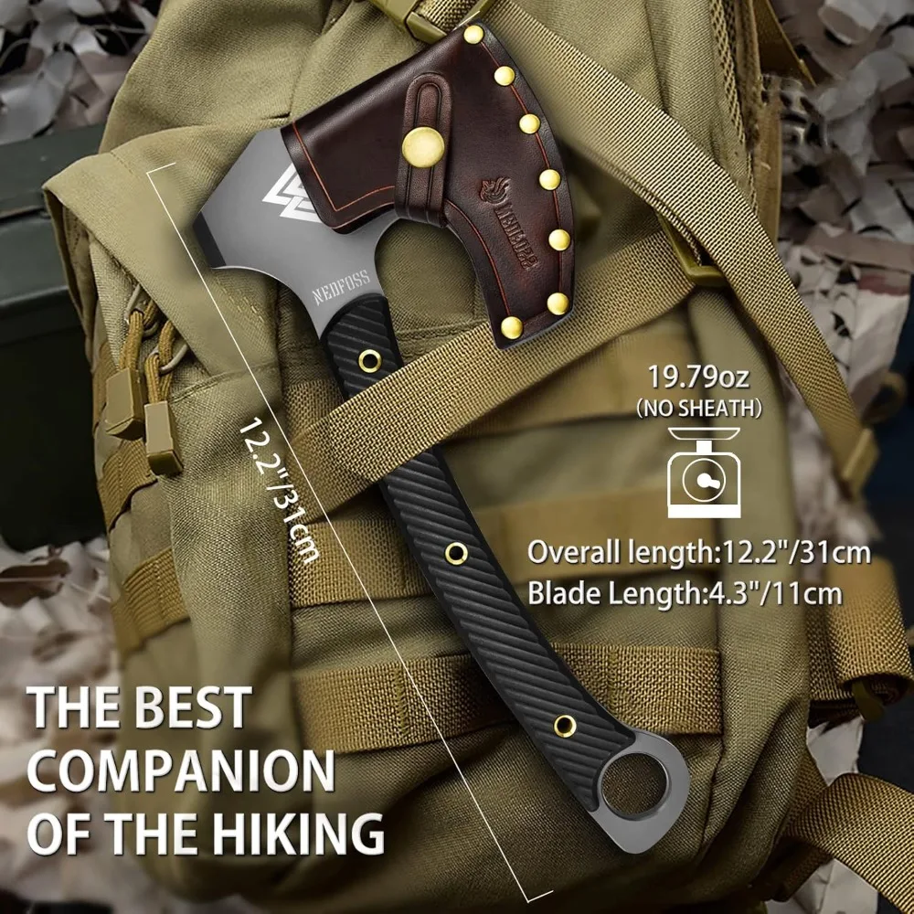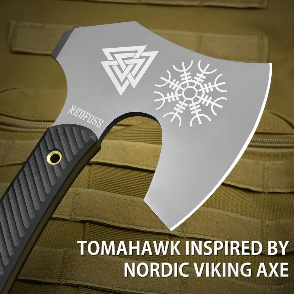 ONE-HANDED BERSERKER AXE: Made from durable 8Cr14Mov steel with HRC55 hardness for excellent edge retention and strength.